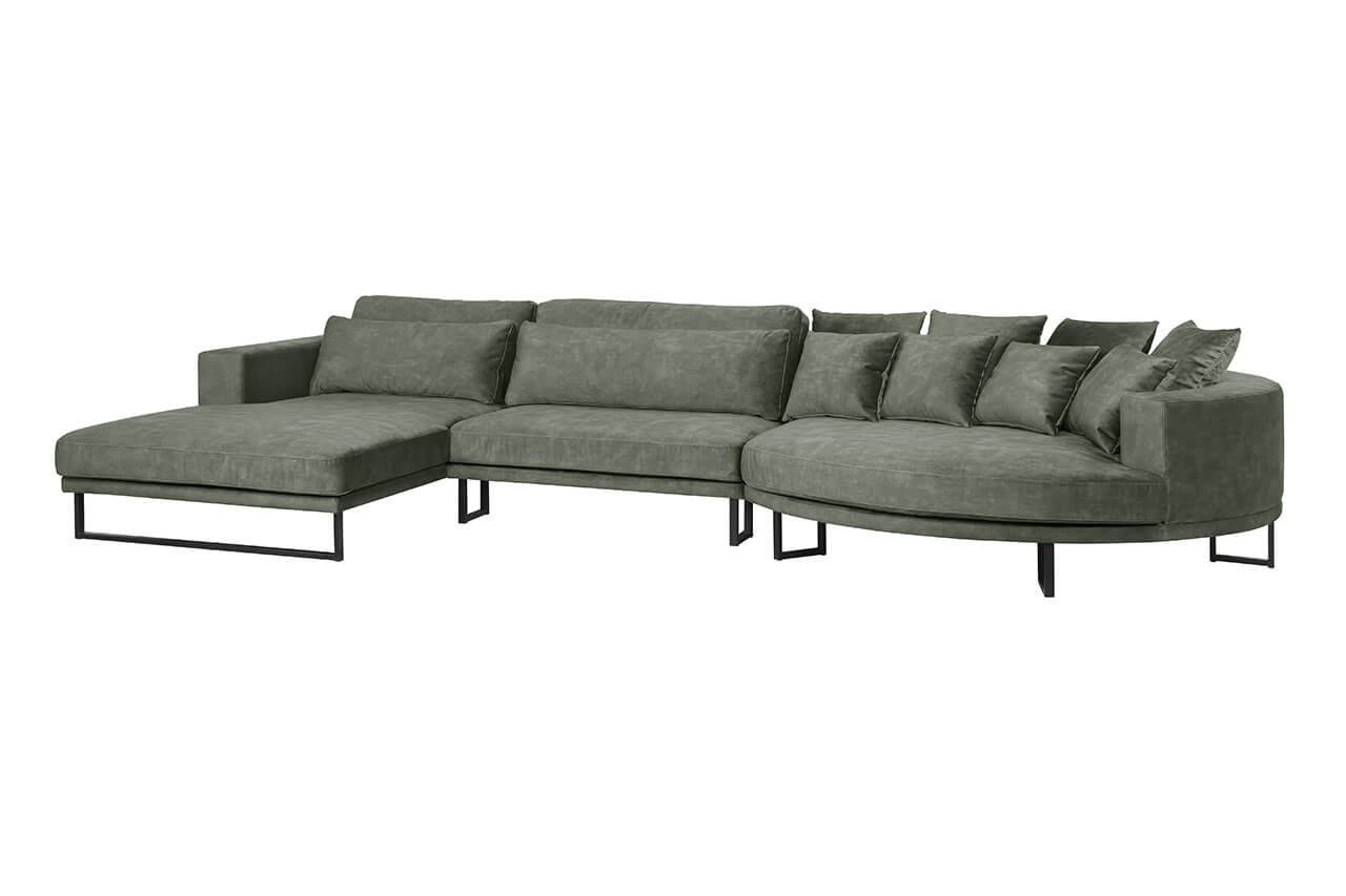 Bij Woonsquare vindt u bijvoorbeeld de Provence loungebank in groen, uitgevoerd in velvet stof met een opvallende ronde longchair en bijpassende kussens. De Provence is er in een compacte en een royale uitvoering, zodat er voor iedere woonkamer een passende maat is.