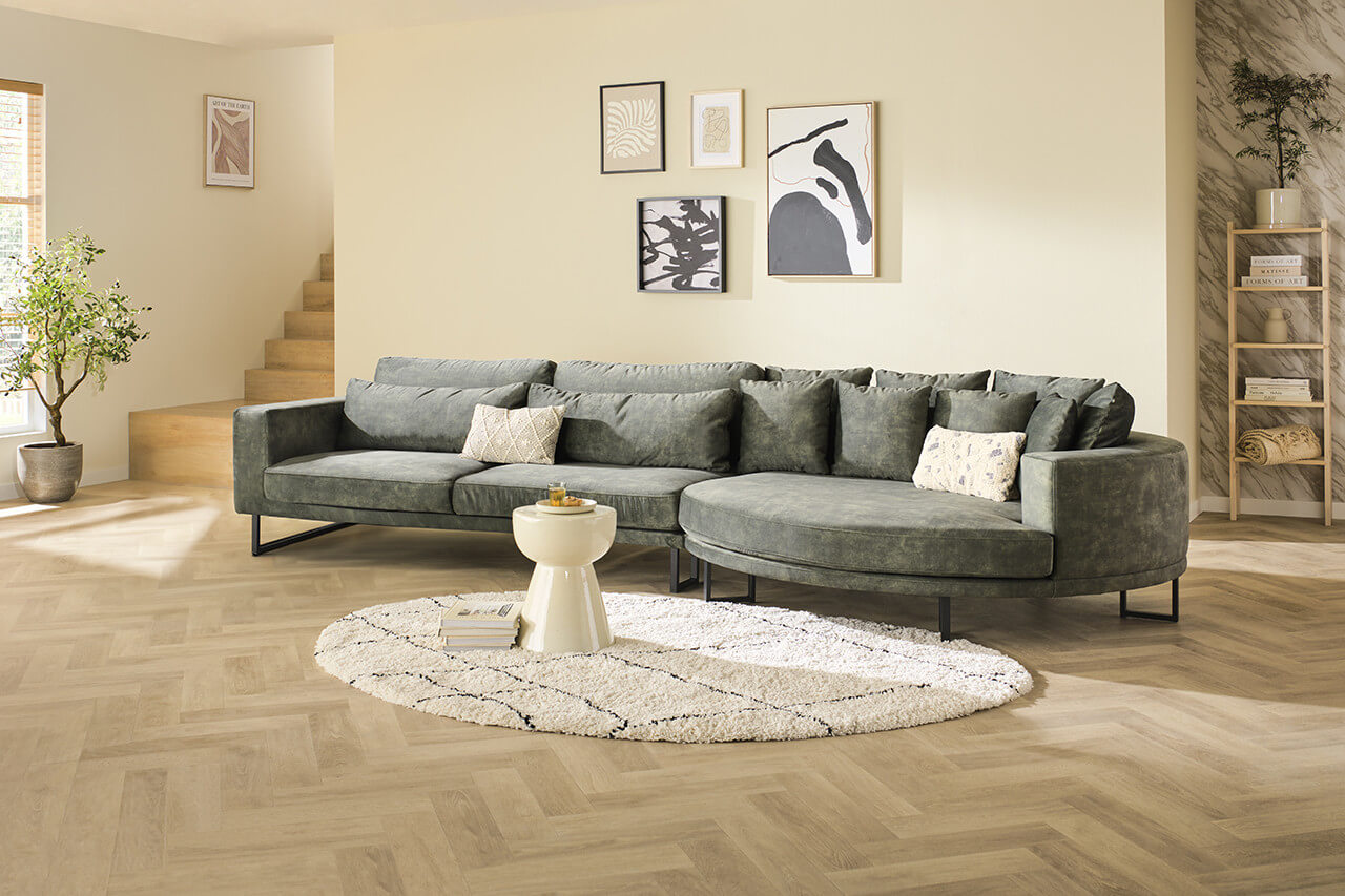 Groen is een rustgevende kleur die tegelijkertijd karakter toevoegt aan een interieur. Een groene bank combineert goed met natuurlijke materialen als hout en riet, maar ook met industriële elementen als staal en beton.
