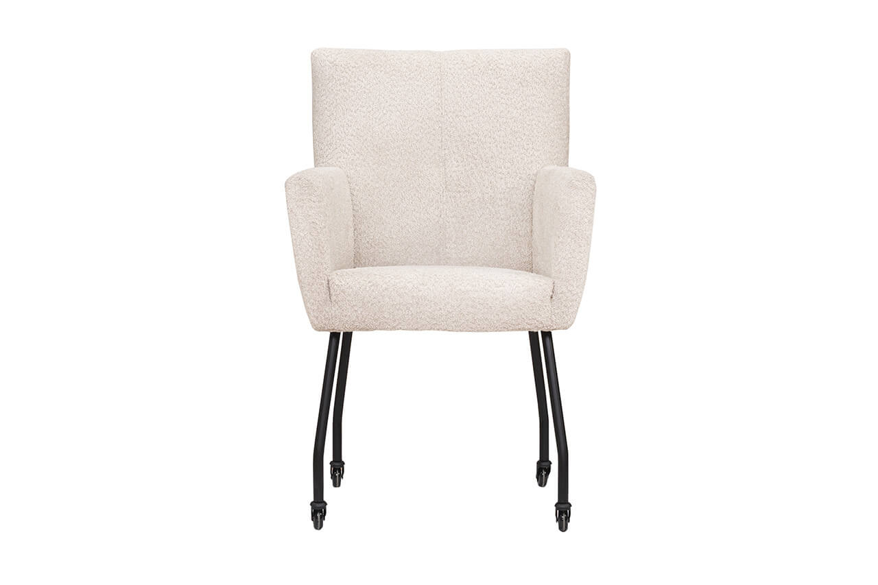 De armleuningen en comfortabele zitting maken Rhodos ideaal voor lange, gezellige diners of ontspannen werkmomenten aan de eettafel. Dankzij de soepele wieltjes verplaats je de stoel eenvoudig, zonder in te leveren op stabiliteit of uitstraling.
