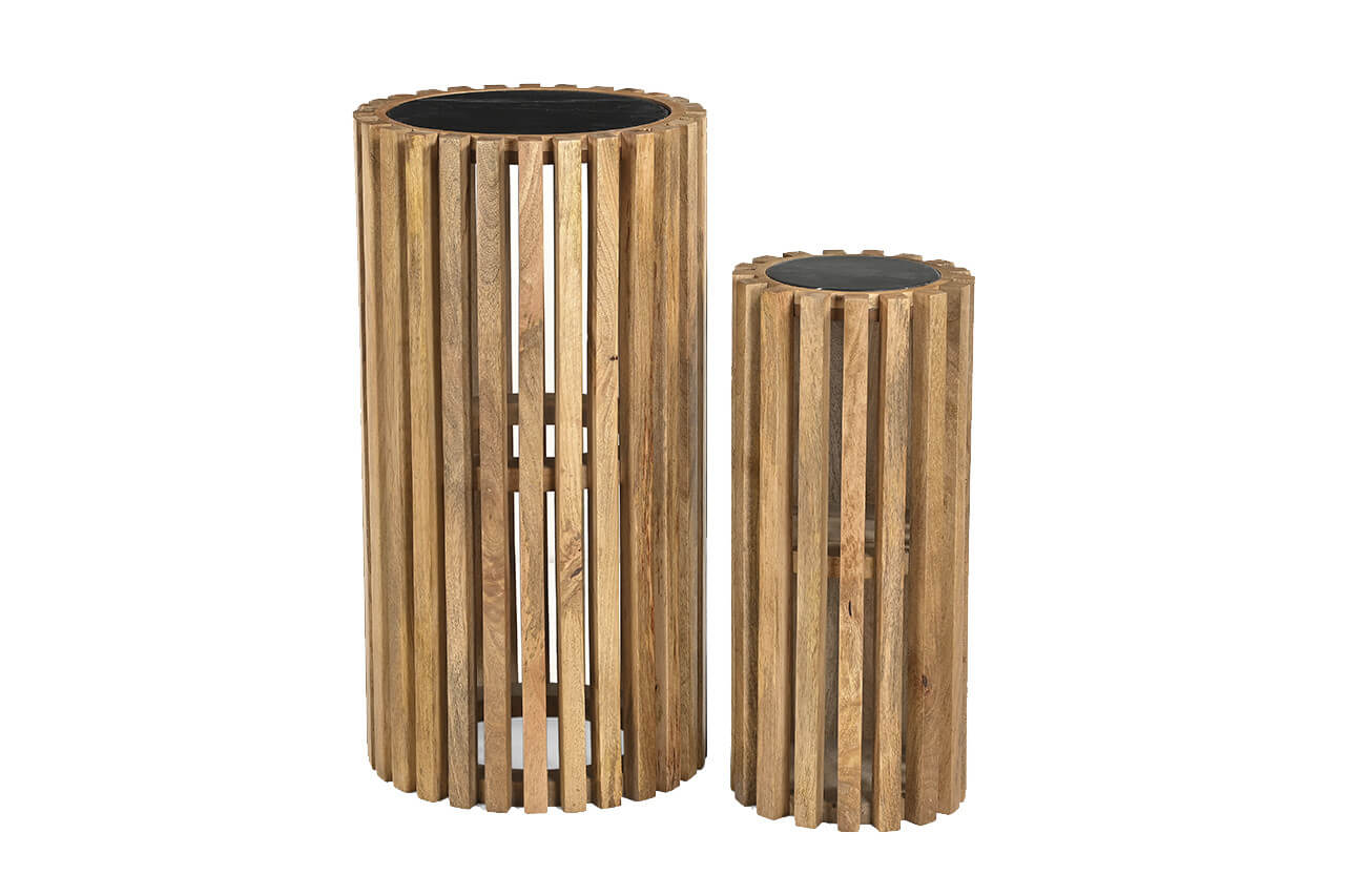 Alor is een ronde salontafelset die tevens gebruikt kan worden als bijzettafel. De set bestaat uit twee hoge tafels met zwart marmer tafelbald en opengewerkt onderstel van mango hout. Door deze warme uitstraling is deze set een trendy eyecatcher in jouw woonkamer. Dit luxe karakter komt helemaal tot zijn recht in een Japandi, minimalistisch, bohemian of ander natuurlijk interieur.